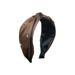 Brązowa elegancka satynowa opaska z kryształkami