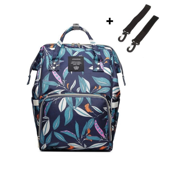 Torba do wózka LEQUEEN, wzór w niebieskie liście.