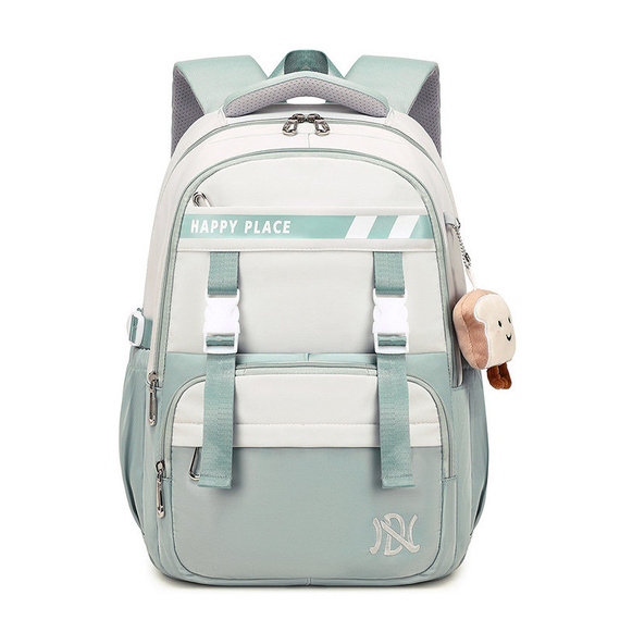 - Modna miętowo-szara kolorystyka i urocza przywieszka sprawiają, że plecak wyróżnia się stylem.
